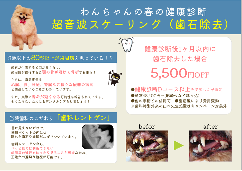 わんちゃんのための春のフィラリア予防+健康診断キャンペーン