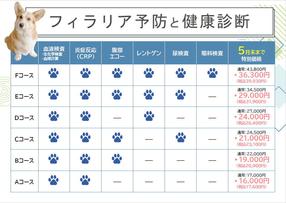 - 3月1日~5月31日までわんちゃんのフィラリア予防と健康診断を実施中です!