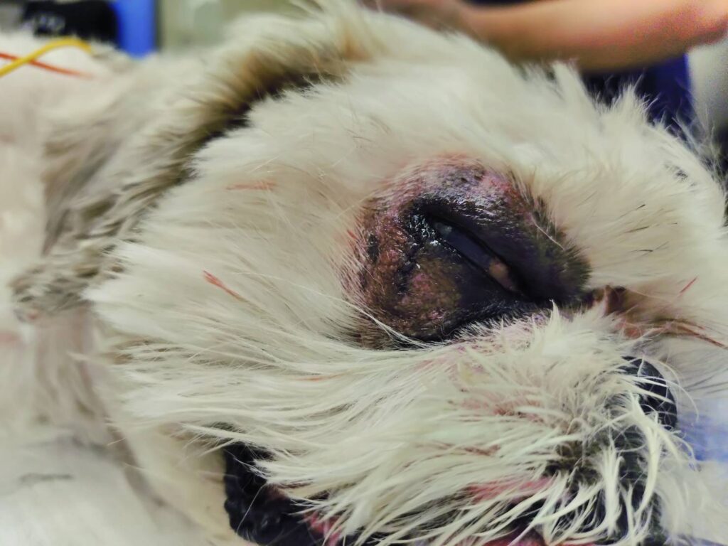 - 眼瞼縫合(まぶたを一時的に閉じて保護)